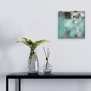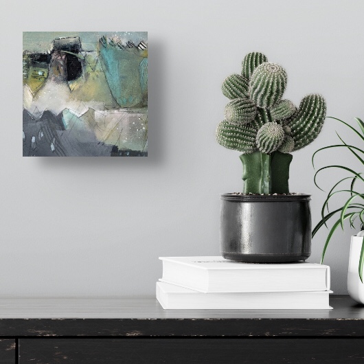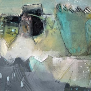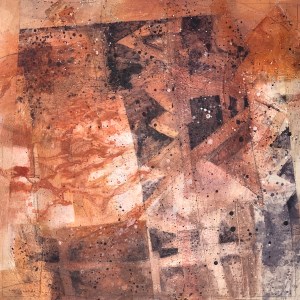 "Lodestone" 12x12" layered watermedia on cradle panel.